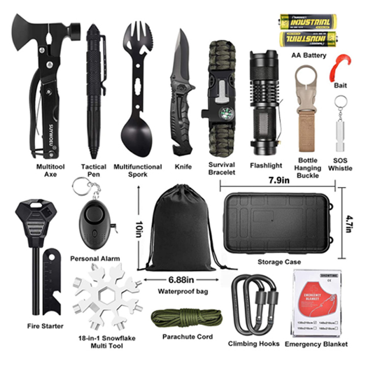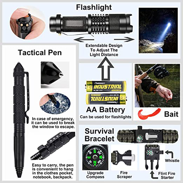 به عنوان تولید کننده حرفه ای، مایلیم کیت بقا در فضای باز دنده اضطراری کمک های اولیه 21 در 1 با کیفیت بالا را به شما ارائه دهیم. و ما بهترین خدمات پس از فروش و تحویل به موقع را به شما ارائه خواهیم داد. هدایایی برای مردان بابا شوهر، کیت بقا 21 در 1، لوازم بقا و تجهیزات جعبه ابزار لوازم کمک های اولیه تاکتیکی خنک برای کمپینگ اضطراری در فضای باز پیاده روی ماهیگیری شکار
