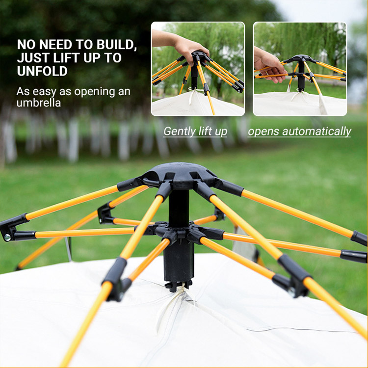 دارای فناوری نوآورانه باز کردن خودکار است که به چادر اجازه می دهد در عرض چند ثانیه به شکل کامل درآید و مراحل پیچیده مونتاژ را حذف کرده و در زمان کمپینگ با ارزش صرفه جویی کند.