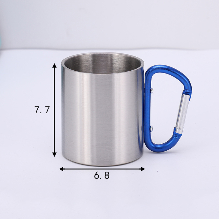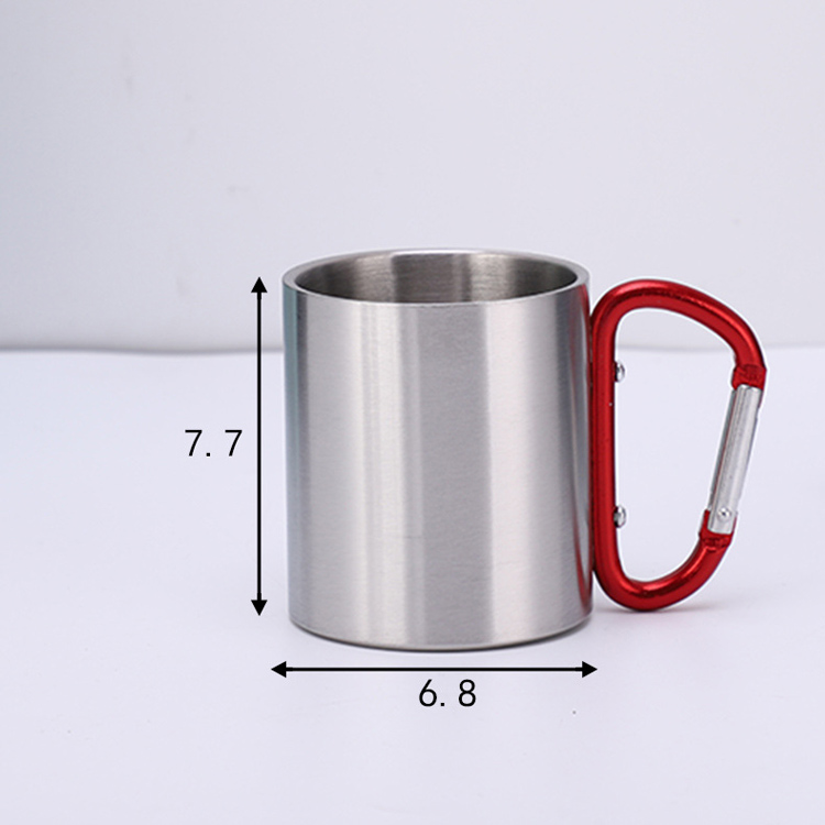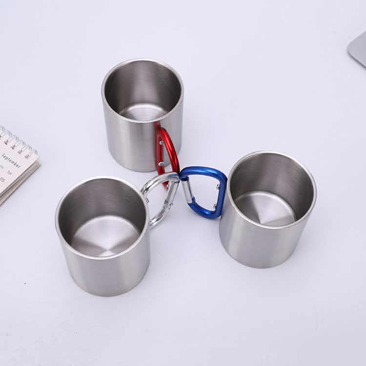 فلاسک لیوان مسافرتی استیل دوجداره کمپینگ. محلول حرارتی قابل حمل نهایی شما برای ماجراجویی در فضای باز. این لیوان فولادی ضد زنگ 220 میلی لیتری دارای عایق خلاء دو جداره و دسته کارابینر مناسب است. ایده آل برای سفر، دمای مطلوب را برای نوشیدنی های سرد و گرم حفظ می کند.