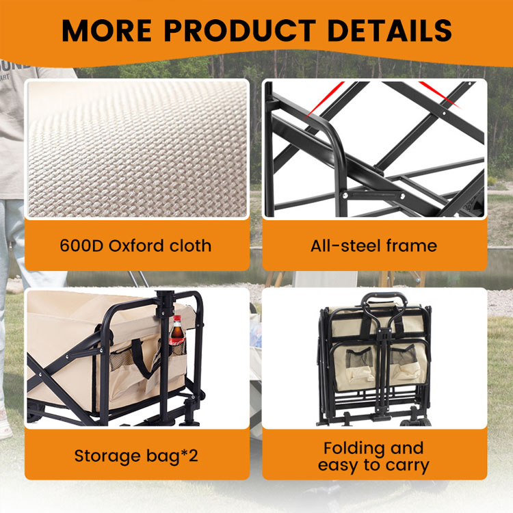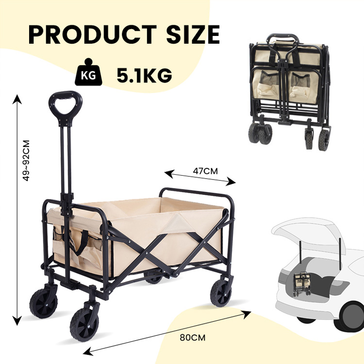 مواد آهنی گاری واگن تاشو تاشو با قیمت پایین. راه حل نهایی حمل و نقل مقرون به صرفه شما برای ماجراجویی در فضای باز. این گاری کاربردی تاشو دارای ساختار آهنی بادوام و طراحی تاشو آسان است. ایده آل برای سفرهای کوهنوردی، پیک نیک، گردش های ساحلی، کمپینگ و استفاده از مسیر باغ.