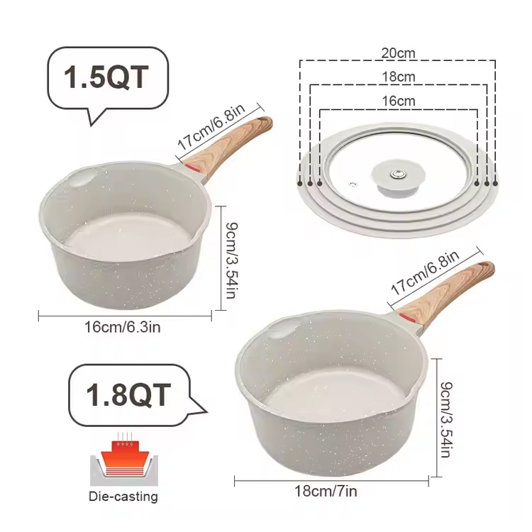 قابلمه های مینی سوپ قابلمه های بدون استیک مجموعه 1.5QT & 1.8QT SAUGE PAN.NEW DESIGN مجموعه ای از قابلمه های آلومینیومی بدون استیک با درب ، شامل گلدان های 1.5qt & 1.8qt ، ایده آل برای تهیه سس ها ، جوش های جوشانده ، یا سوپ های چوبی ، با دسته چوب چوبی و با دوام با دوام و روکش غیر استیک برای پخت و پز آسان و تمیز کردن.