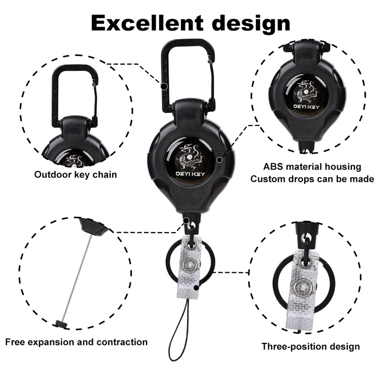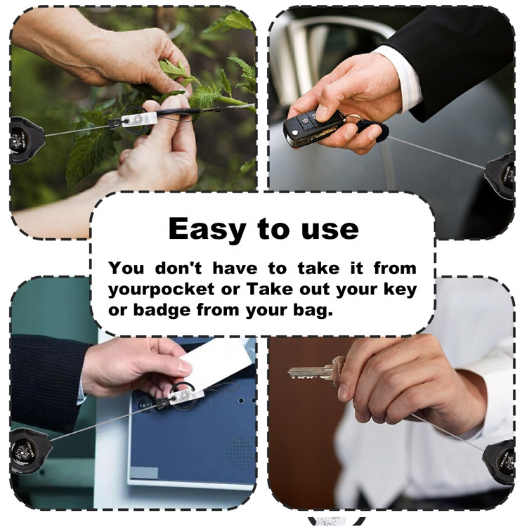 دارای یک طناب نایلونی بادوام 80 سانتی متری با مکانیزم جمع شدنی صاف است که ضمن جلوگیری از گره خوردن، کلیدهای شما را ایمن و در دسترس نگه می دارد و در حین فعالیت های خارج از منزل، به راحتی باز می شود.