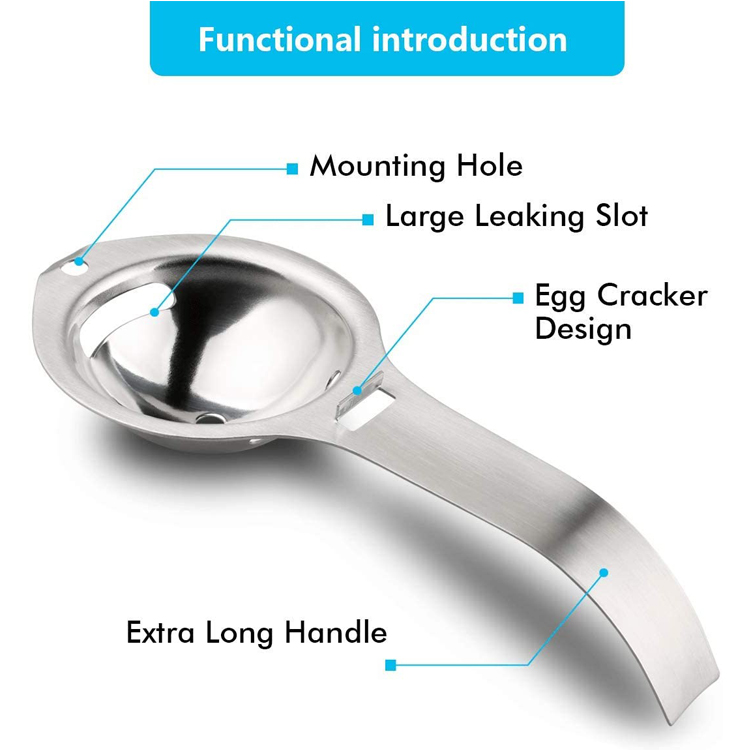· فولاد ضد زنگ ممتاز: جداکننده تخم مرغ ما از فولاد ضد زنگ 304 سازگار با محیط زیست ممتاز، محکم، سالم و بادوام برای استفاده در طول عمر ساخته شده است.
