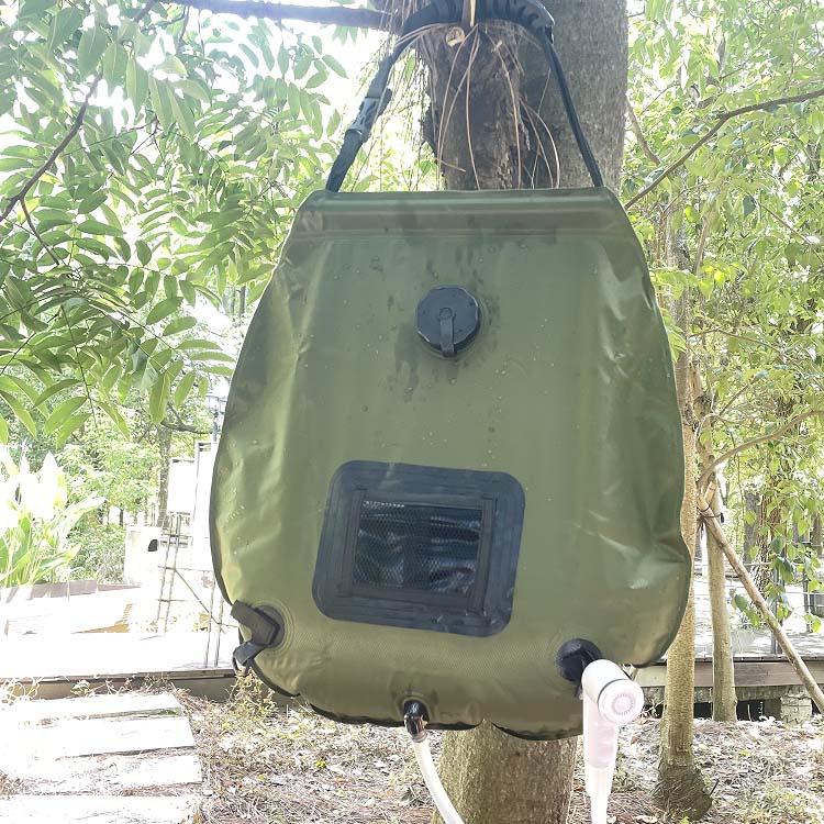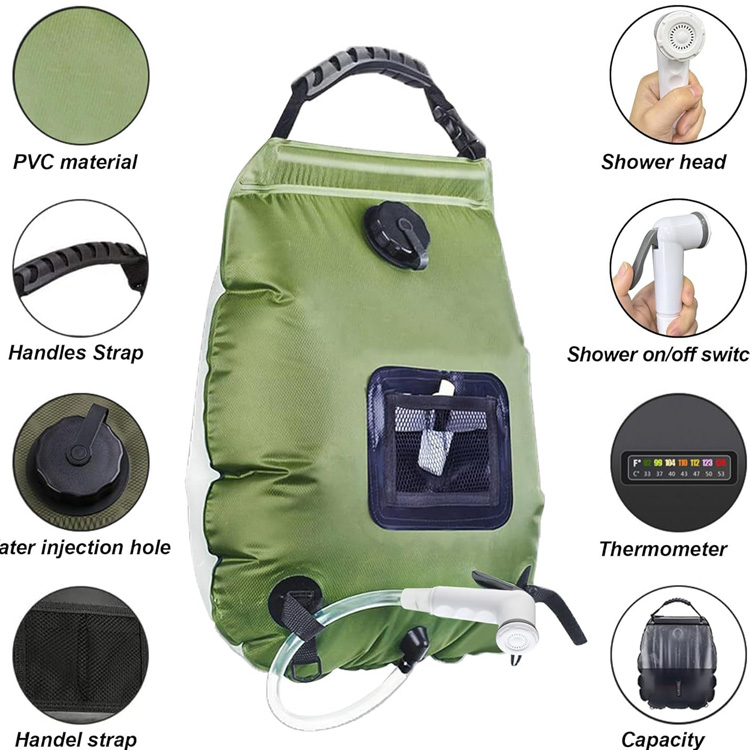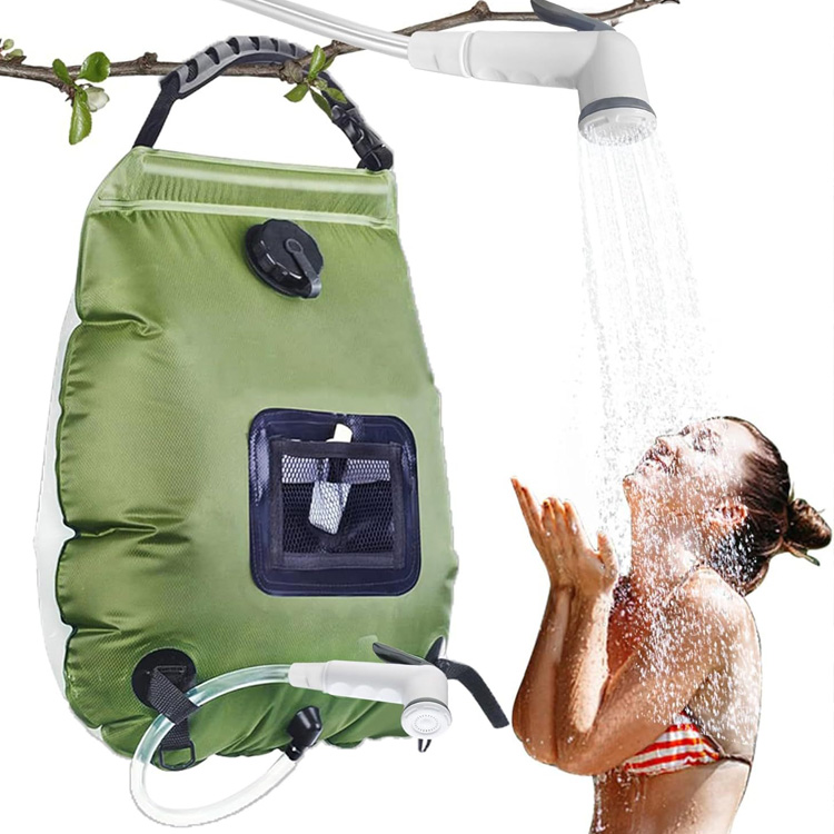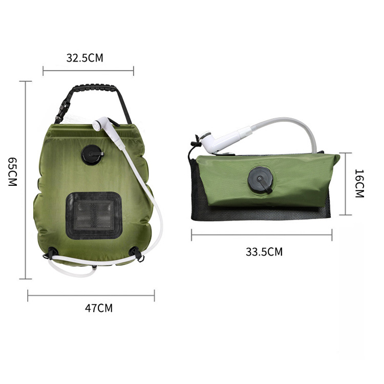 گرمایش کمپینگ دوش قابل حمل خورشیدی کیسه دوش کمپینگ. بهترین راه حل بهداشتی قابل حمل شما برای ماجراجویی در فضای باز. این کیسه دوش خورشیدی 5 گالن / 20 لیتر آب گرم برای راحتی کمپینگ فراهم می کند. با بهره گیری از انرژی خورشیدی، تجربه دوش گرم و طراوت را در هر نقطه از بیابان تضمین می کند.