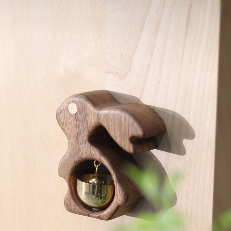 زنگ درب برنجی دست ساز آهنرباهای یخچال خرگوش چوب جامد