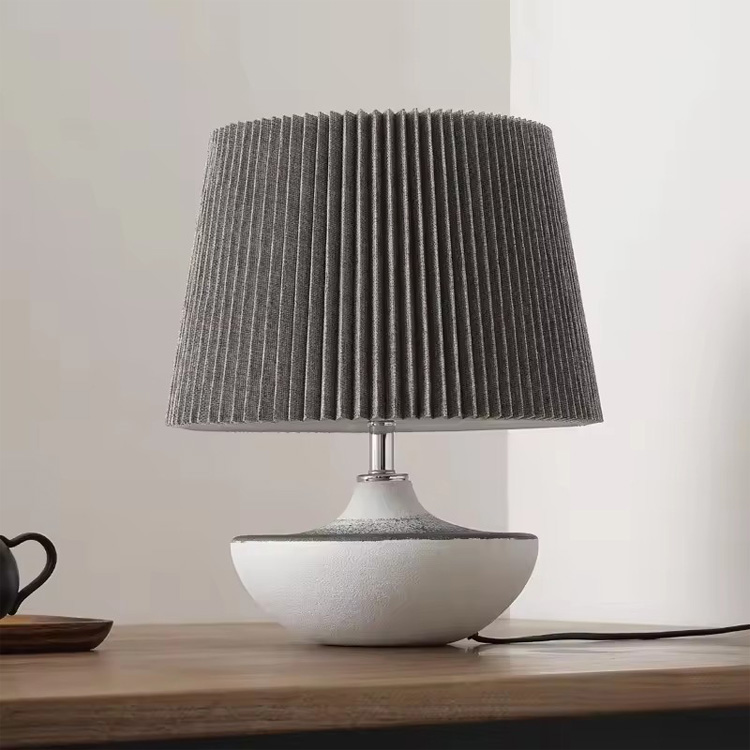 چراغ رومیزی سفالی اتاق نشیمن اتاق خواب Wabi-sabi هتل. طراحی مدرن با سایه پارچه بافت، مناسب برای افزودن فضایی گرم به اتاق نشیمن یا اتاق خواب. پایه سرامیکی بادوام با زیبایی مینیمالیستی. ایده آل برای هر دو فضای داخلی معاصر و کلاسیک.