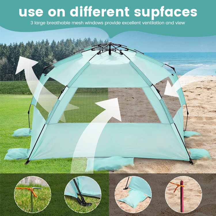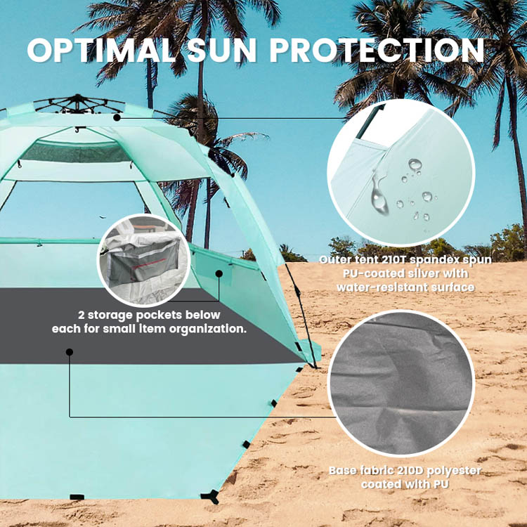 عمده فروشی فله پلی استر نور آفتاب سایه چادر ساحلی. راه حل عمده فروشی شما برای محافظت در برابر آفتاب ساحل. این چادر ضد آفتاب پلی استر فوق سبک دارای طراحی تاشو پاپ آپ راحت است. ایده آل برای استفاده انبوه در فضای باز در ساحل، استقرار آسان را با پوشش سایه قابل اطمینان ترکیب می کند.