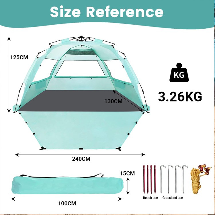 ساخته شده از پلی استر درجه بالا 190T با وزن تنها 3.8 پوند، قابلیت حمل استثنایی را بدون به خطر انداختن دوام یا عملکرد محافظت در برابر آفتاب ارائه می دهد.